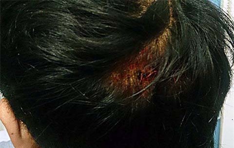 Một vết thương khá nặng trên đỉnh đầu phía sau anh Chung |
