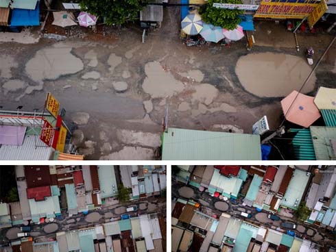 Có lẽ không có con đường "đau khổ" hơn đường Nữ Dân Công ở Sài Gòn vì chỉ hơn 2km nhưng có cả trăm "ao nước" nối tiếp nhau.