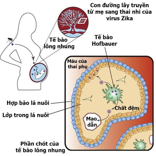 Từ đó các tế bào virus có thể đi qua nhau thai, sau đó lây nhiễm vào mô não ở thai nhi đang phát triển và cuối cùng dẫn đến chứng đầu nhỏ.