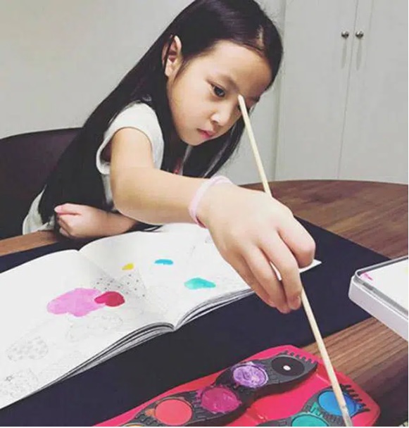 Tiểu Tứ Nguyệt được mẹ cho tiếp xúc với học thư pháp, nghệ thuật từ nhỏ.