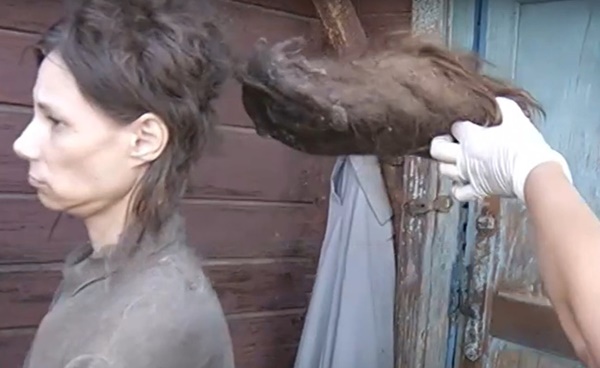 Theo truyền thông địa phương, người phụ nữ 42 tuổi cũng thừa nhận rằng cô đã không tắm kể từ năm 2006. Trong một bức ảnh gây sốc, có thể thấy nhân viên xã hội cắt một "cục tóc" vừa rối vừa bết đen xì ra khỏi đầu của Nadezhda.