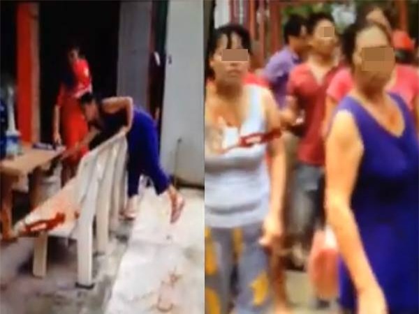 chí trong clip còn có những tiếng hô "đưa dao đây" để "thanh toán". Hậu