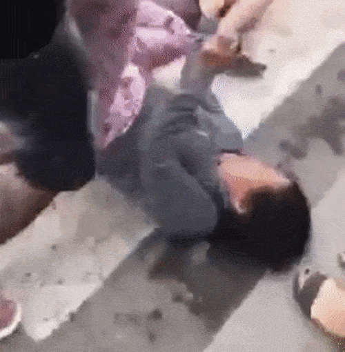 Thậm chí, khi người mẹ này bất chấp mọi thứ để chạy lại che cho con thì đã bị 1 nam thanh niên xăm trổ cầm chân kéo ra ngoài, dùng tay đánh vào vùng đầu của bà. Trong khi đó, cô gái tiếp tục bị đánh tát, váy áo rách, xộc xệch.