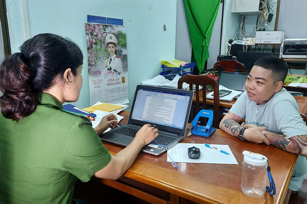 Cơ quan công an làm việc với Ngô Thị Bích Trâm. Ảnh: Phước Thanh/Công an Đồng Tháp