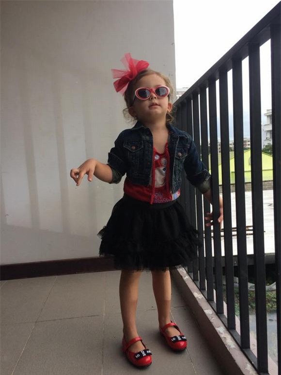 Con gái Hồng Nhung tạo dáng sành điệu như người mẫu nhí.