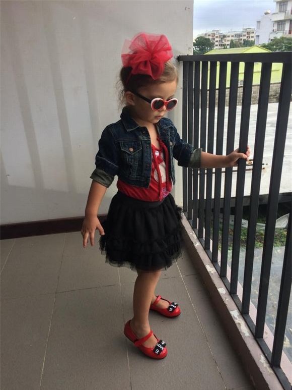Con gái Hồng Nhung khá thích thú và tự tin tạo dáng trước máy chụp ảnh. Nét đáng yêu của con gái Hồng Nhung khiến cho fan thích thú.