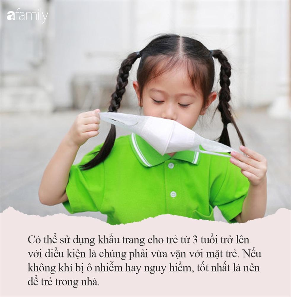 Nếu quyết định đeo khẩu trang cho trẻ, bố mẹ cần chọn loại vừa vặn với mặt. Bảo vệ hô hấp sẽ chỉ có hiệu quả nếu sử dụng khẩu trang chính xác, biết cách đeo, tháo ra và cất giữ đúng cách theo đúng hướng dẫn của nhà sản xuất.