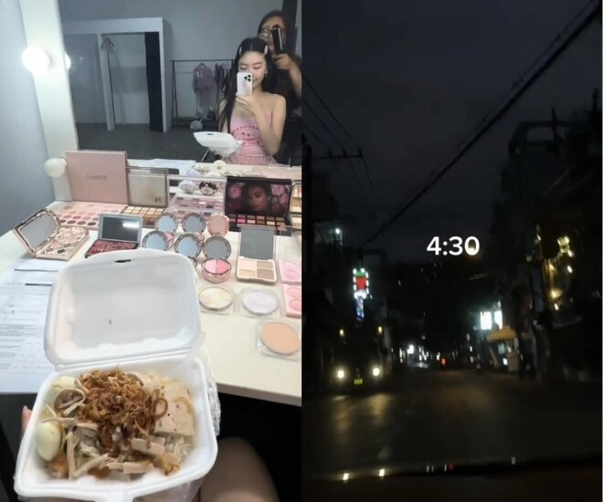 Lọ Lem tâm sự phải tranh thủ ăn sáng trong lúc trang điểm để kịp giờ cho buổi ghi hình. 10X bật mí để làm ra quảng cáo vài chục giây, cô phải mất nguyên ngày để ghi hình.