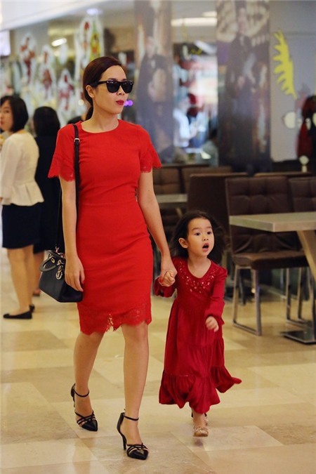 Lưu Hương Giang cùng con gái Mina nổi bật khi đi dạo trong 1 trung tâm mua sắm sang trọng. Hai mẹ con thu hút với trang phục màu đỏ.
