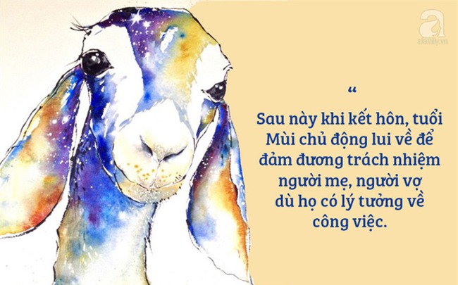 Phụ nữ thuộc tuổi Mùi có trái tim khá mềm yếu, dịu dàng. Đa số họ đều sở hữu tính tình hiền lành và bao dung. Từ lúc sinh ra cho đến khi trưởng thành, luôn được cha mẹ bảo bọc hết mực. Mặc dù gia cảnh không khá giả hoặc gặp nhiều khó khăn nhưng bố mẹ của tuổi Mùi luôn khiến họ có cảm giác an toàn. Sau khi kết hôn, tuổi Mùi chủ động lui về để đảm đương trách nhiệm người mẹ, người vợ dù họ có lý tưởng về công việc. Chính vì đức tình này mà được chồng ngày càng yêu thương. Phụ nữ tuổi Mùi chịu cực giỏi, ngày trước dù được bố mẹ cưng chiều nhưng họ không hề có tính tiểu thư, ngược lại rất biết quan tâm và lo lắng cho người khác. Đức tính này của tuổi Mùi phần nào khiến hôn nhân của họ êm đầm và hạnh phúc hơn người khác.