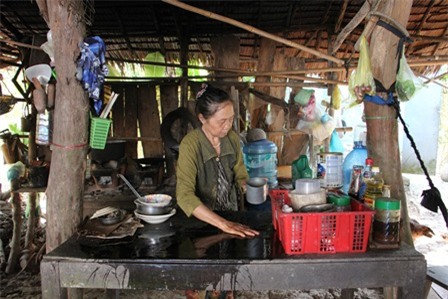 Hàng ngày bà Dung phải lo cơm nước, chăm sóc Vy dù tuổi đã ngoài 70