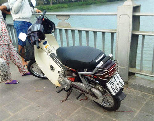 Chiếc xe máy mà nạn nhân để lại trên cầu sau khi gieo mình xuống sông tự tử. Ảnh: L.C