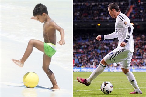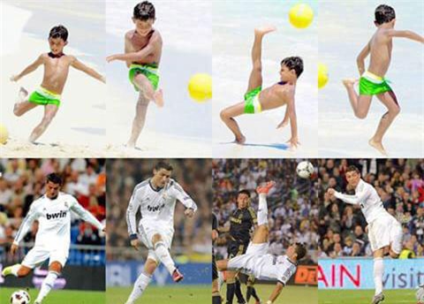 chơi bóng giống nhau như đúc giữa bố con CR7 thì không còn phải bàn nữa.