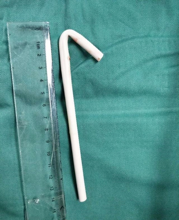 Chiếc que nhỏ được gắp ra khỏi họng của cậu bé dài đến 17 cm. May mắn sau đó sức khỏe của cậu bé phục hồi tốt và sớm được xuất viện.