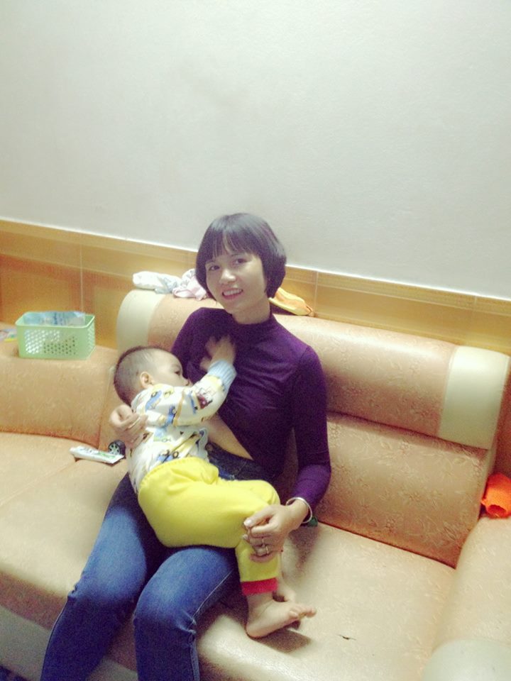 Rút kinh nghiệm từ lần sinh đầu, lúc sinh bé Voi (tên gọi ở nhà), chị Tưởng bằng mọi cách chỉ dùng sữa mẹ để nuôi con.