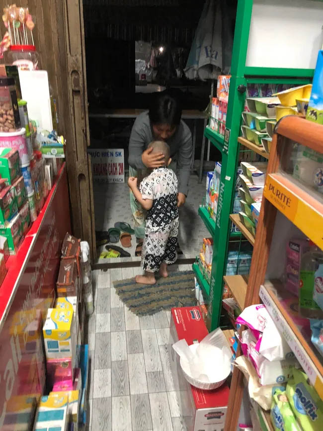 Chị Vân - mẹ bé H. ôm hôn đứa nhỏ hàng xóm chạc tuổi con mình