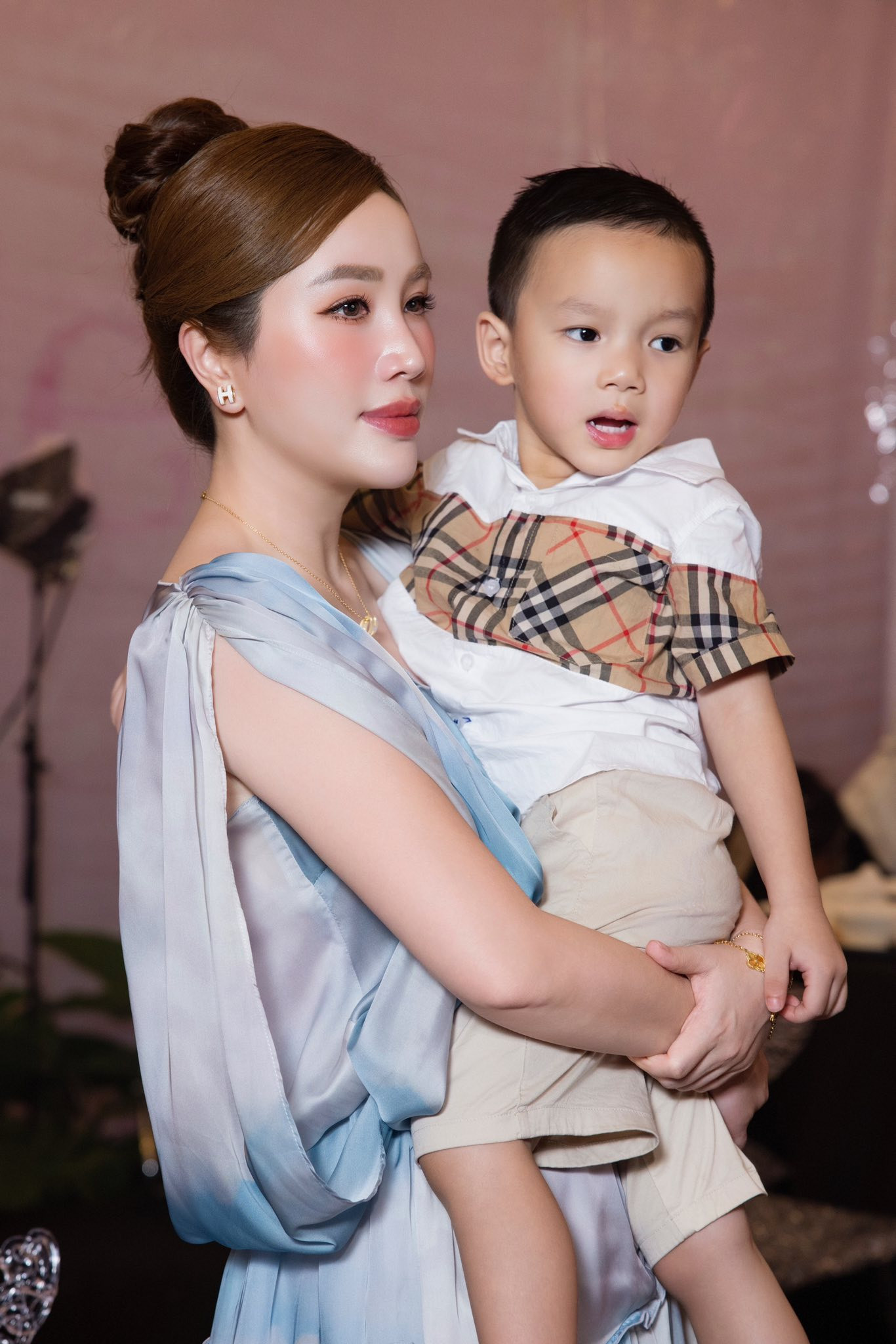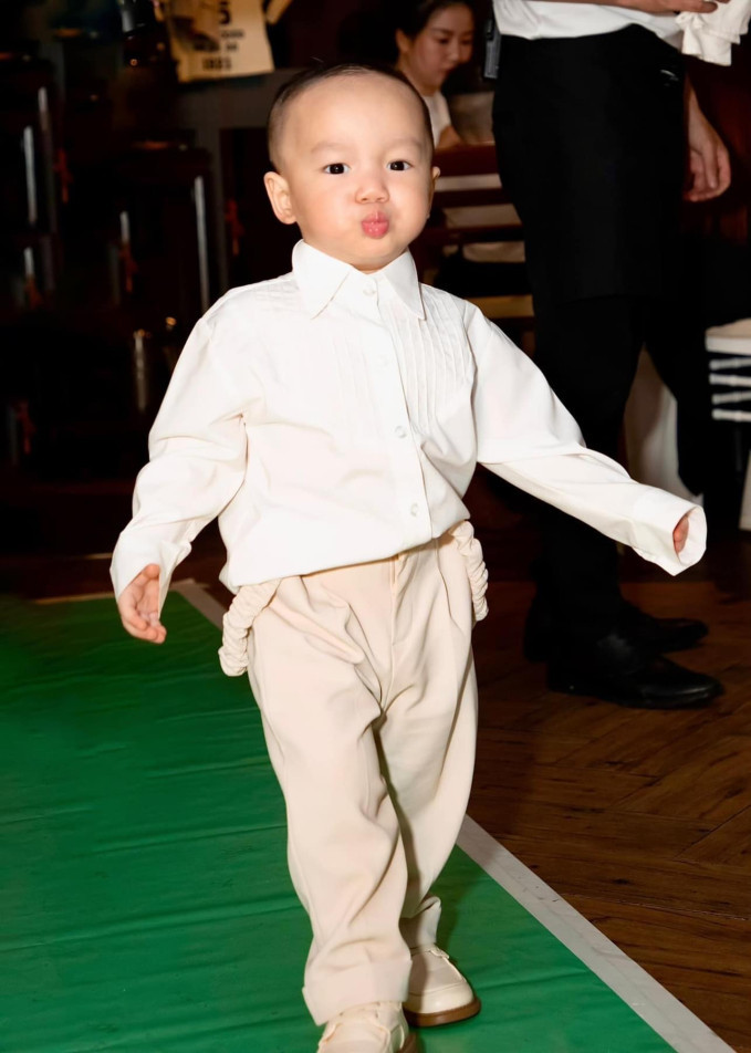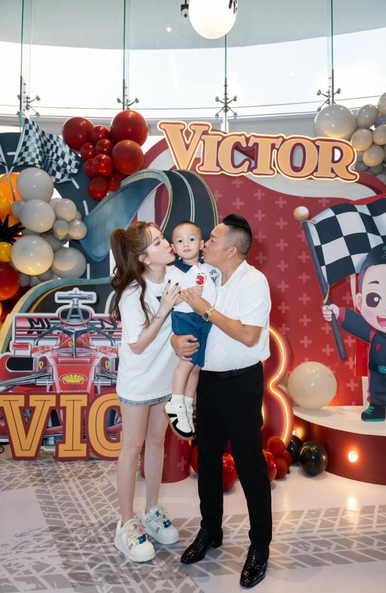 Dự bữa tiệc, con trai Victor của Bảo Thy hiếm hoi lộ diện. Hiện quý tử đã gần 4 tuổi, sở hữu vẻ ngoài lanh lợi, thông minh và điển trai. Nhóc tỳ được nhận xét thừa hưởng nhiều nét đẹp từ ba mẹ.