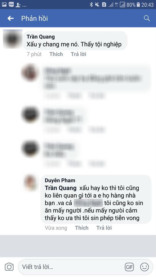 Cụ thể, vừa qua, Duyên có đăng tải vài bức ảnh của con trai, xong bày tỏ cảm xúc háo hức, vui mừng, xen lẫn hồi hộp vì sắp được về nhà thăm con lần đầu tiên sau hơn 1 tháng "đập đi xây lại". Bên dưới phần bình luận, ngoài những lời động viên của cư dân mạng, bỗng có một chàng thanh niên xuất hiện, vô tư nói: "Xấu y chang mẹ nó, thấy tội nghiệp".