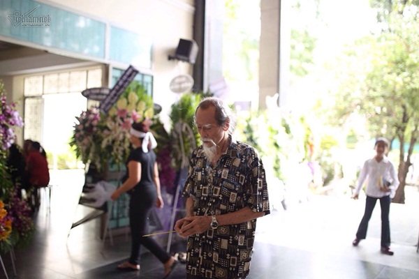 | Nghệ sĩ Chánh Tín tới viếng người bạn đồng nghiệp sáng 28/7. |