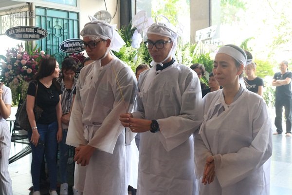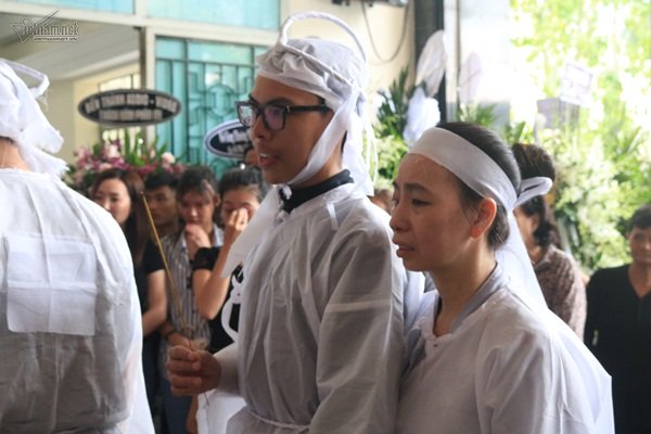 | Con trai cả cố nghệ sĩ Thanh Hoàng được người nhà mặc áo tang. |