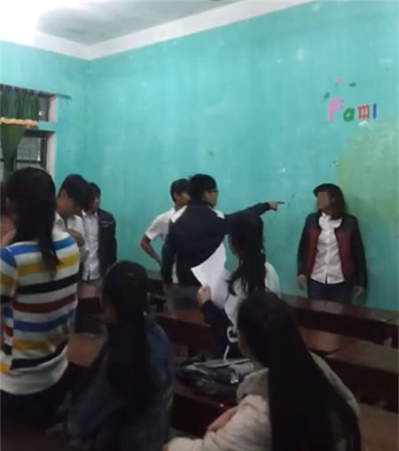 Thậm chí, trong clip đánh hội đồng trong lớp ngày hôm qua, cậu nhóc "nhân vật chính" còn cởi phăng áo sơ mi bên ngoài như một hành động cực kỳ oai hùng, tiến tới dọa nạt nạn nhân, thậm chí còn không ngần ngại đe nẹt cả những người đang cố bênh vực cô bé bị đánh. Chưa hết, một người đánh chưa đủ, lại có thêm hẳn 2 nam sinh khác tham gia cùng.
