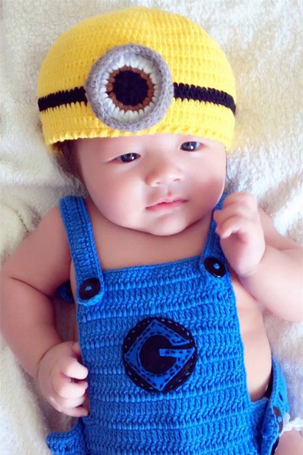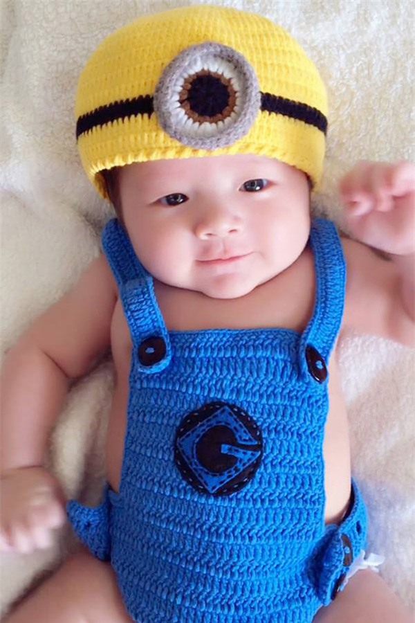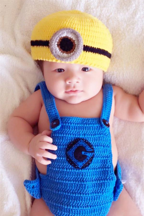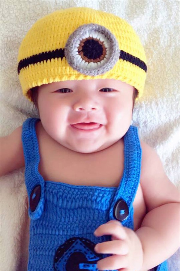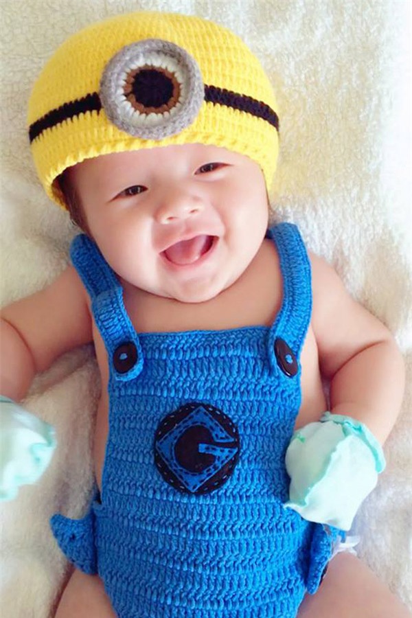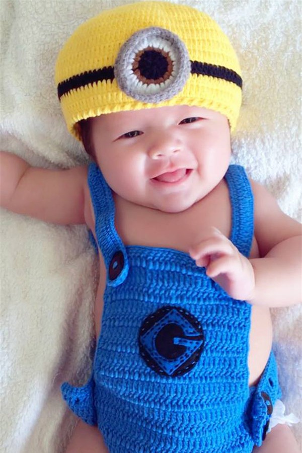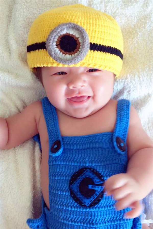 Trong loạt hình mới, quý tử nhà Elly Trần hết nheo mắt, cười tươi lại lè lưỡi rất đáng yêu trước ống kính.