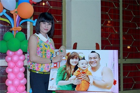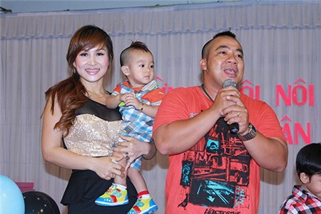 Bé Hiếu Nhân vui vẻ trong vòng tay mẹ Tuyết Liên, trong lúc ba Hiếu Hiền hăng say ... dẫn chương trình