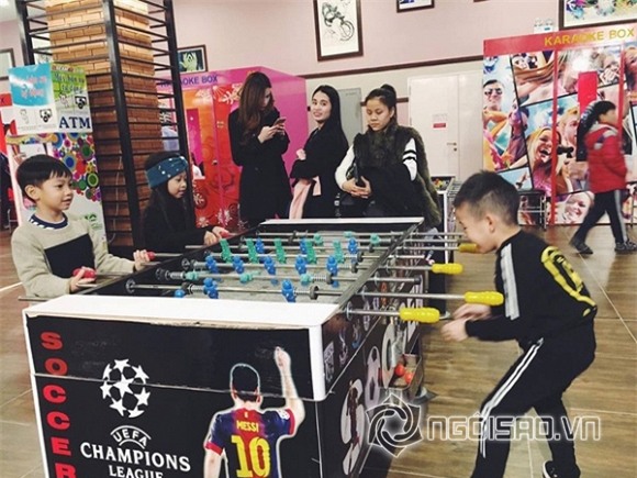 Không những thế, Hồ Ngọc Hà còn đưa con đi trung tâm thương mại chơi với bạn bè. Con trai Hồ Ngọc Hà rất tự nhiên khi nắm tay bạn gái đi chơi.