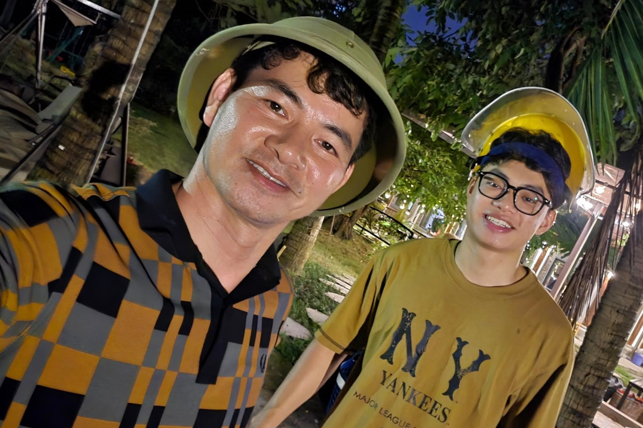 NSND Xuân Bắc chụp hình cùng con trai và bạn của con.