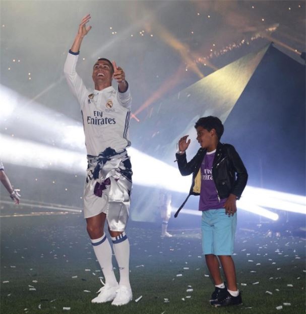 Ronaldo cũng khoe cậu con trai Junior giành cú đúp danh hiệu ở giải trẻ tại trường. Đó là sự trùng hợp thú vị với tin Ronaldo đón con sinh đôi.