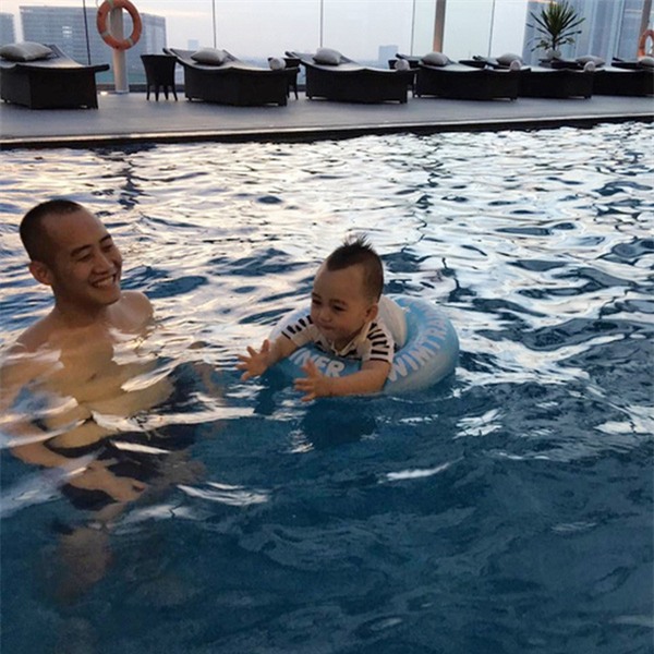 Cũng giống như những công tử nhà giàu khác, Ricky được gia đình cho đi tập bơi từ nhỏ. Điều đặc biệt là bé được bố thiếu gia dẫn đến bể bơi của một khách sạn 5 sao ở Hà Nội để học kỹ năng này. Có thể nói dù bận rộn với công việc nhưng ông xã của Ngọc Thạch luôn cố gắng dành thời gian bên quý tử nhỏ, chia sẻ những khoảnh khắc đáng nhớ đầu đời của cậu bé.