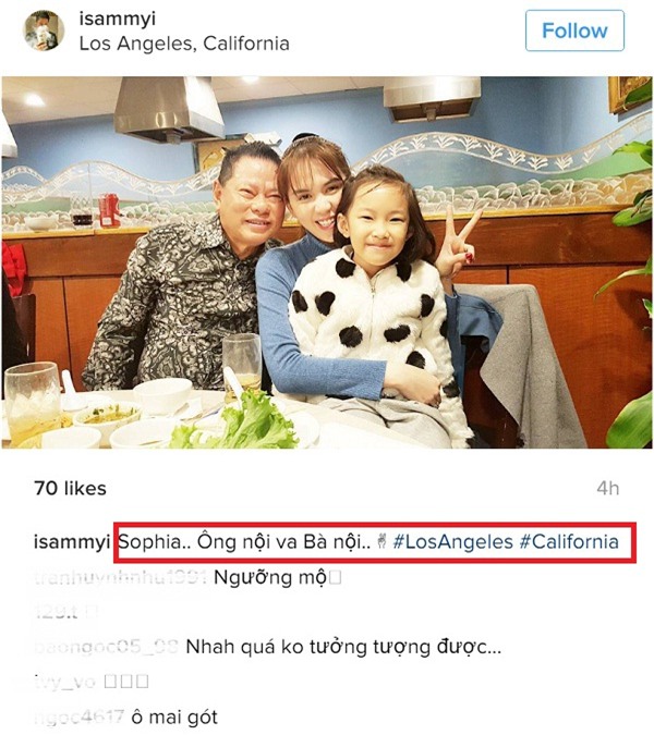 Mới đây trên trang cá nhân của mình, con trai của tỷ phú Hoàng Kiều đã đăng tải hình ảnh con gái mình tên Sophia chụp cùng Ngọc Trinh và cha lên mạng. Trong ảnh, Ngọc Trinh ôm Sophia tươi cười đầy tình cảm. Con trai tỷ phú Hoàng Kiều cũng đã xem Ngọc Trinh là bà nội của con gái mình khi gắn kèm theo dòng nội dung: "Sophia, Ông nội và Bà nội".