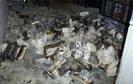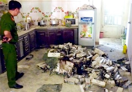 Tại hiện trường, lực lượng công an phát hiện hàng ngàn cây thuốc lá (gồm các loại Jet, Hero...) đã được chủ nhà chất thành đống giữa nhà, trong phòng vệ sinh và cả hành lang rồi châm lửa đốt. Một số vật dụng bên cạnh cũng bị lửa bén tới.