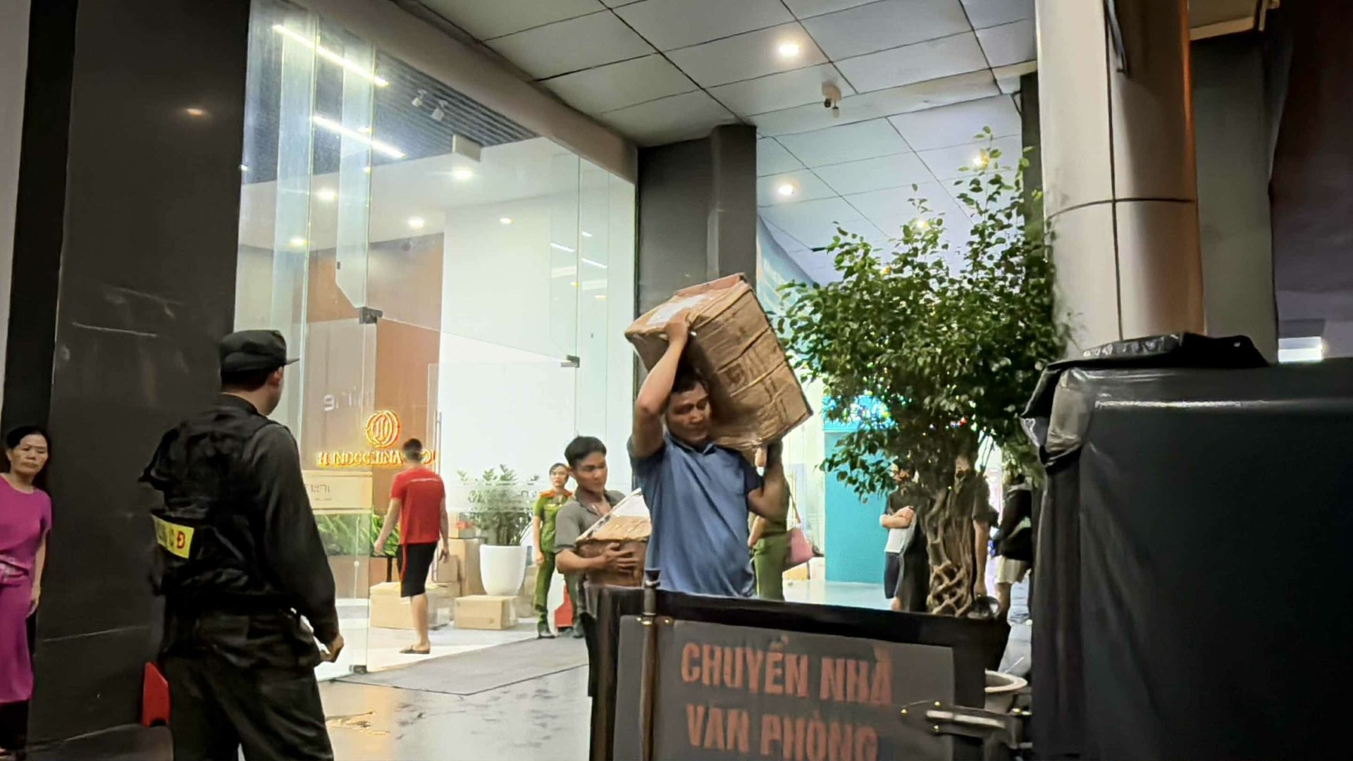Theo ghi nhận của phóng viên Báo Người Lao Động, tối cùng ngày, dưới sự giám sát của lực lượng công an, nhiều người đã đưa hàng chục thùng carton xuống sảnh tầng 1 của tòa nhà. Sau đó, khoảng 19 giờ 35 phút cùng ngày, cảnh sát đã chuyển các thùng carton này ra xe tải để đưa về trụ sở công an.