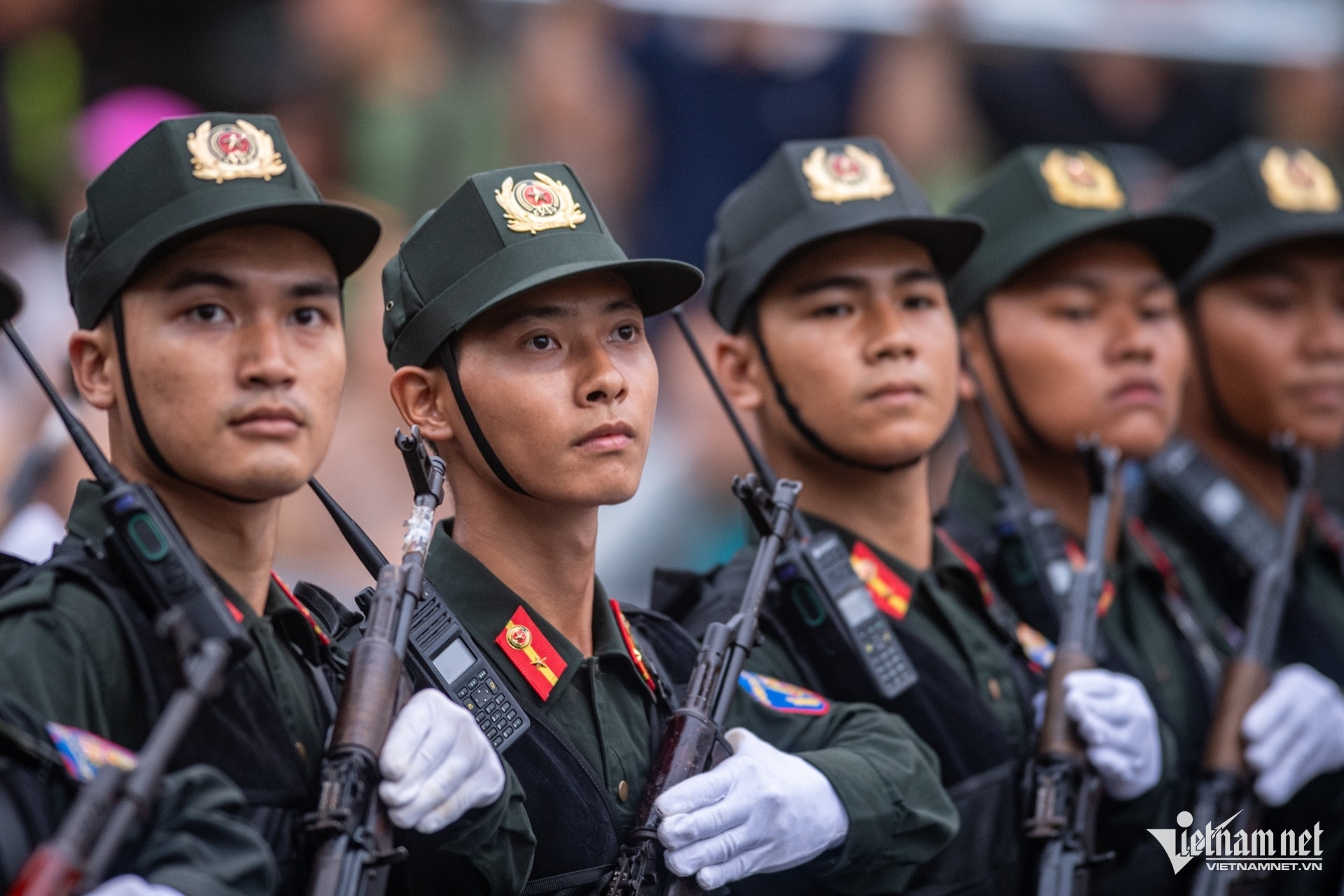 Sau đó là các khối diễu binh của Công an Hà Nội, biểu dương sức mạnh, tinh thần chính quy, tinh nhuệ.