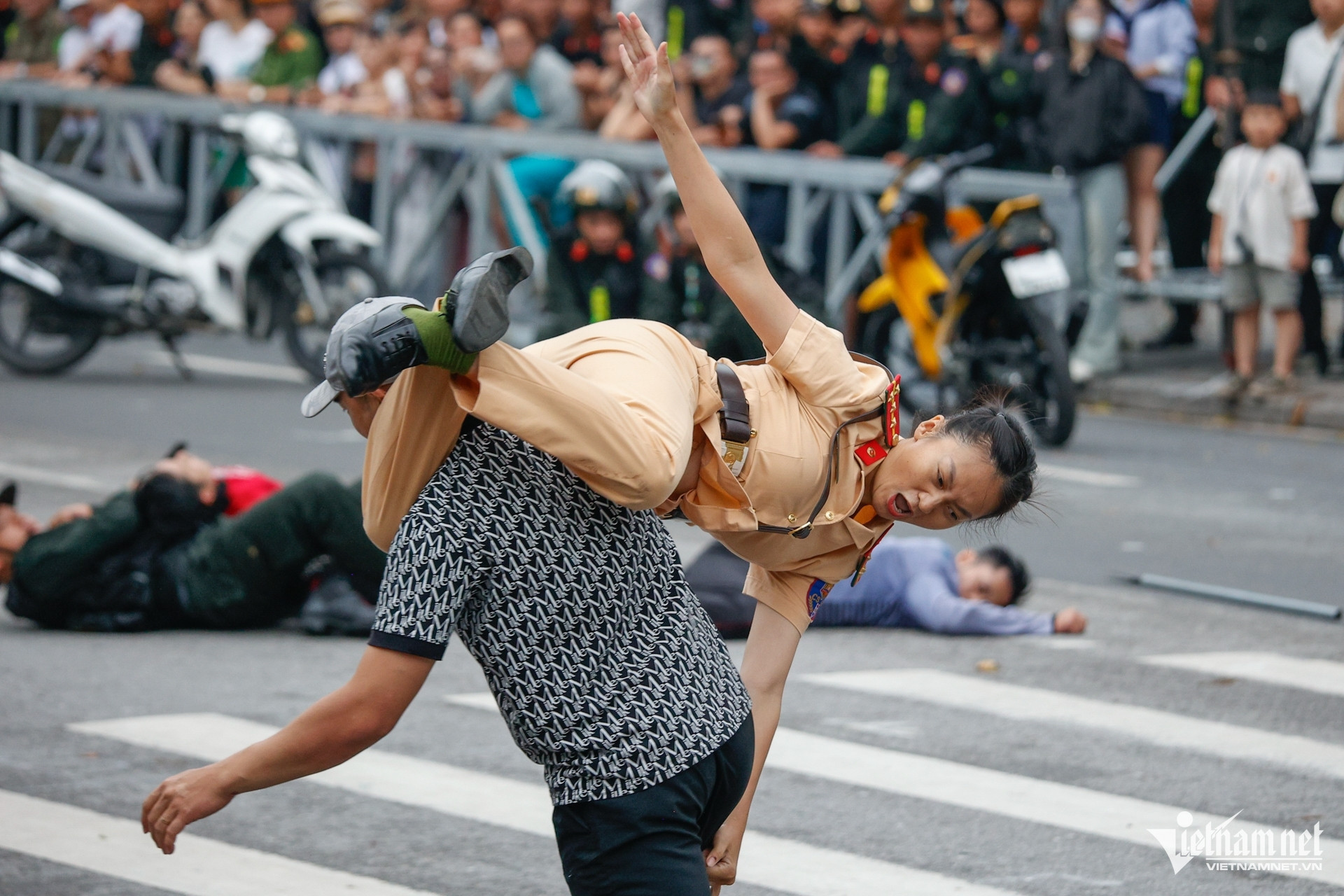 Màn biểu diễu võ thuật và ra quân áp chế đối tượng gây mất trật tự an ninh trong tình huống giả định.