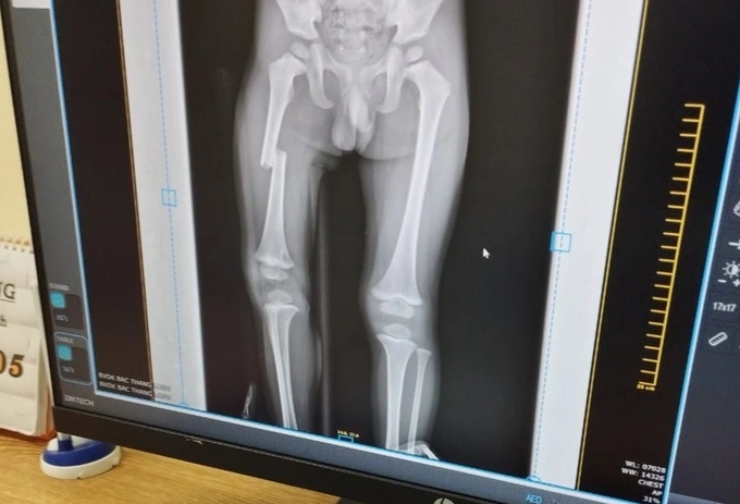 Chú của nạn nhân cho hay, kết quả chụp chiếu cho thấy bé trai bị gãy xương đùi.