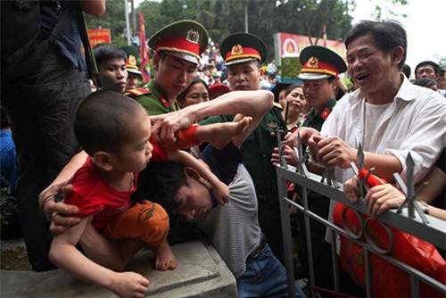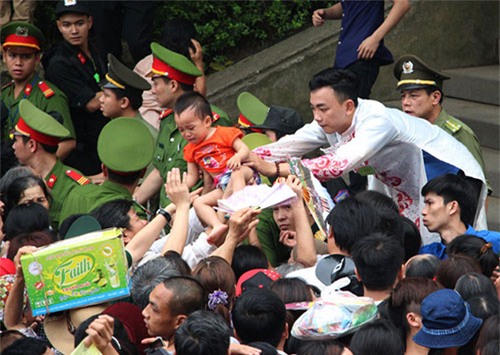 Ngay khi Nghi thức Dâng hương của các đồng chí lãnh đạo Đảng, Nhà nước kết thúc. Khoảng 8h30 cùng ngày, lực lượng chức năng đã mở hàng rào an ninh để nhân dân di chuyển lên các điểm di tích của Đền Hùng dâng hương, dâng lễ lên Quốc Tổ Hùng Vương. Lượng người quá đông khiến các chiến sĩ làm nhiệm vụ an ninh rất vất vả để ngăn cản dòng người chen lấn, xô đẩy. Đã có nhiều người bị ngất do quá mệt mỏi và đã được các chiến sĩ công an trợ giúp, dìu vào nơi thoáng mát để ổn định sức khỏe. Theo Ban tổ chức, tính từ ngày 1/3 âm lịch đến hết ngày hôm nay 10/3 âm lịch có khoảng 7 triệu lượt du khách đã về với Đất Tổ Hùng Vương.