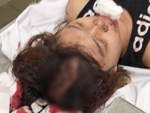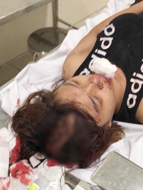 Cô gái trẻ bị chém thương tích ở vùng đầu, miệng phải nhập viện điều trị.