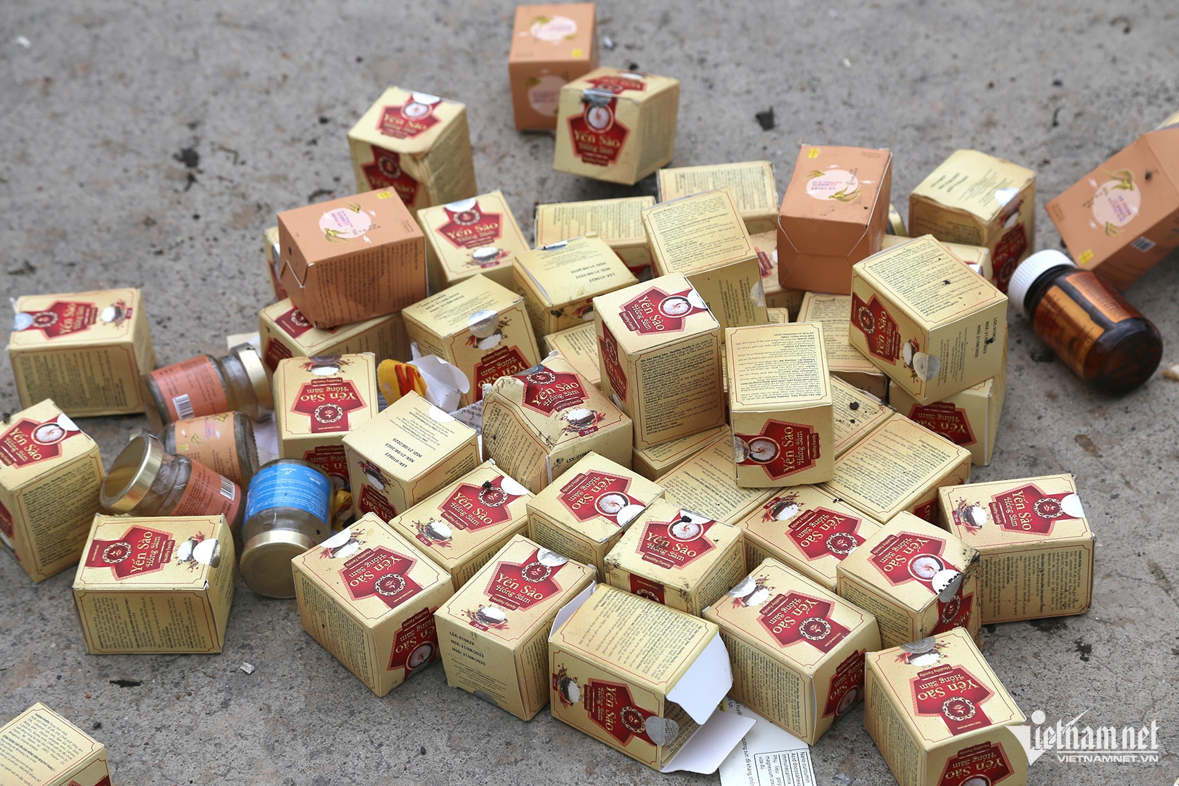 Những hộp thực phẩm chức năng này chưa được sử dụng, chủ yếu là siro, nước yến sào, đông trùng hạ thảo, thực phẩm bổ sung vitamin. Ngoài số thực phẩm chức năng trên, tại bãi rác cơ quan chức năng còn phát hiện thuốc nhuộm tóc, lọ xịt hôi nách...