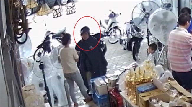 Theo hình ảnh camera an ninh ở cửa hàng ghi lại, vào thời điểm trên, anh Ánh đi xe máy đến dựng trước cửa hàng để mua bóng đèn. Do cửa hàng hết hàng nên anh này đi bộ sang cửa hàng bên cạnh để mua.