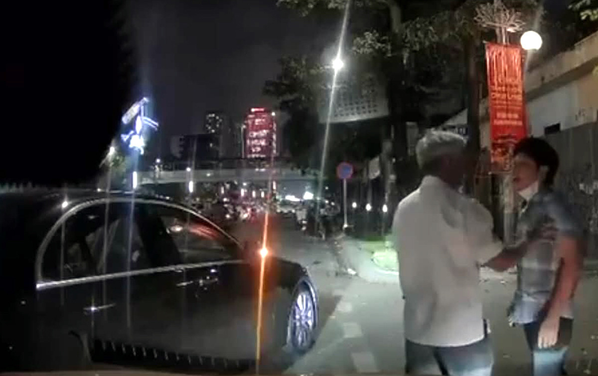 Ngay sau đó, hai tài xế xuống xe. Tài xế Mercedes chửi bới, dùng tay đấm nhiều lần vào đầu tài xế còn lại.