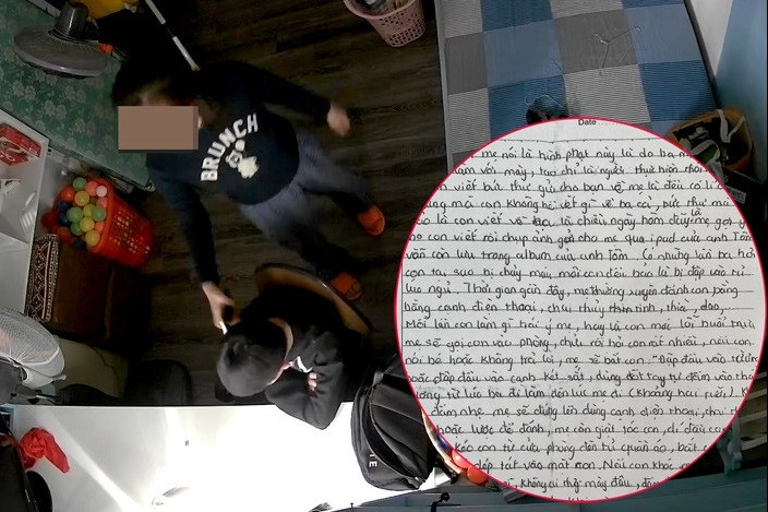 Trong bức tâm thư, có đoạn viết: “Thời gian gần đây, mẹ thường xuyên đánh con bằng điện thoại, chai thủy tinh, thìa, dao…”. Bức thư cũng có đoạn viết, mỗi khi mắc lỗi, bé trai thường xuyên bị mẹ mắng chửi, thậm chí là bị đập đầu vào bàn, tường, két sắt...