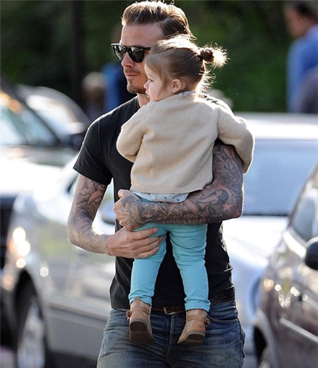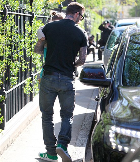| Hôm 30/4, Becks bế cô con gái nhỏ xuống phố. Hai bố con diện đồ đối lập, bố mặc màu đen còn con mặc đồ màu sáng. Giống mẹ Vic, Harper cũng rất ít cười nhưng trong buổi đi dạo phố với bố tại London hôm qua, cô nhóc 21 tháng tuổi đã chịu nở nụ cười có vẻ khoái chí. |