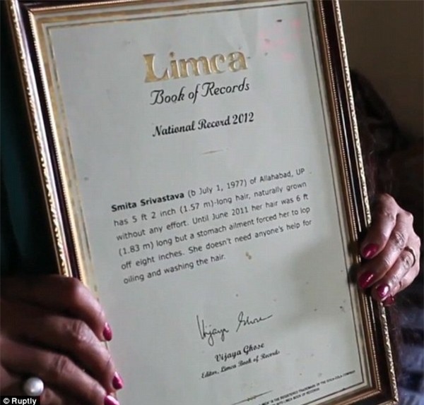 Sở hữu mái tóc óng ả và dài lên tới 2,1m, cô Smita Srivastava đang nuôi hy vọng mình sẽ trở thành chủ nhân mới của danh hiệu "Mái tóc dài nhất thế giới". Trước đó, người phụ nữ này đã được Kỷ lục Limca công nhận là người có mái tóc dài nhất Ấn Độ.