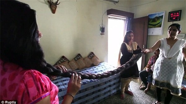 Mọi người đều tỏ thái độ ngưỡng mộ trước mái tóc của nàng công chúa Rapunzel đời thực của nước Ấn Độ này.