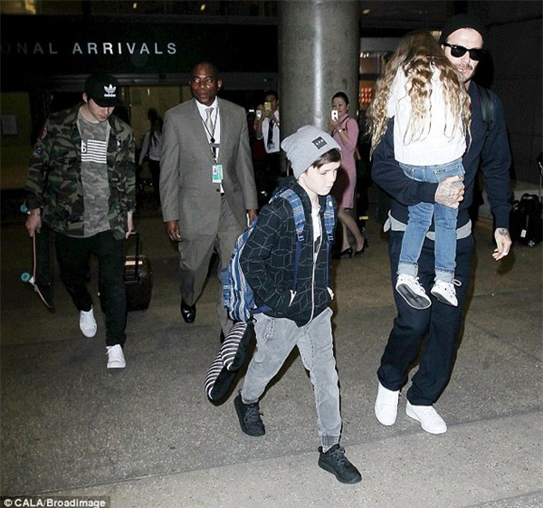 Tối 24/3, Beckham đưa 4 người con tới Los Angeles, Mỹ. Gia đình ngôi sao người Anh lập tức trở thành tâm điểm chú ý ở sân bay.