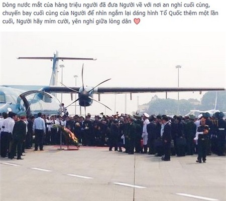 Trước đó, dù máy bay đã đưa di quan Đại tướng rời Hà Nội, những bức ảnh, dòng xúc cảm vẫn không ngừng được chia sẻ lên mạng.