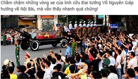 8h12, thành viên Trâm Võ viết: "Giây phút ra đi buồn thương đâu bằng giây phút thấy Người đã sống bình dị mà vĩ đại như thế. Di ảnh Người khói mờ che mất nhưng hình ảnh Người mãi sống trong lòng nhân dân".