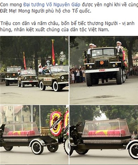 Nnhững dòng chia sẻ tiếp tục được gửi đến trang cá nhân về Đại tướng Võ Nguyên Giáp. Và những vẫn thơ đau thương vẫn gửi đến người: